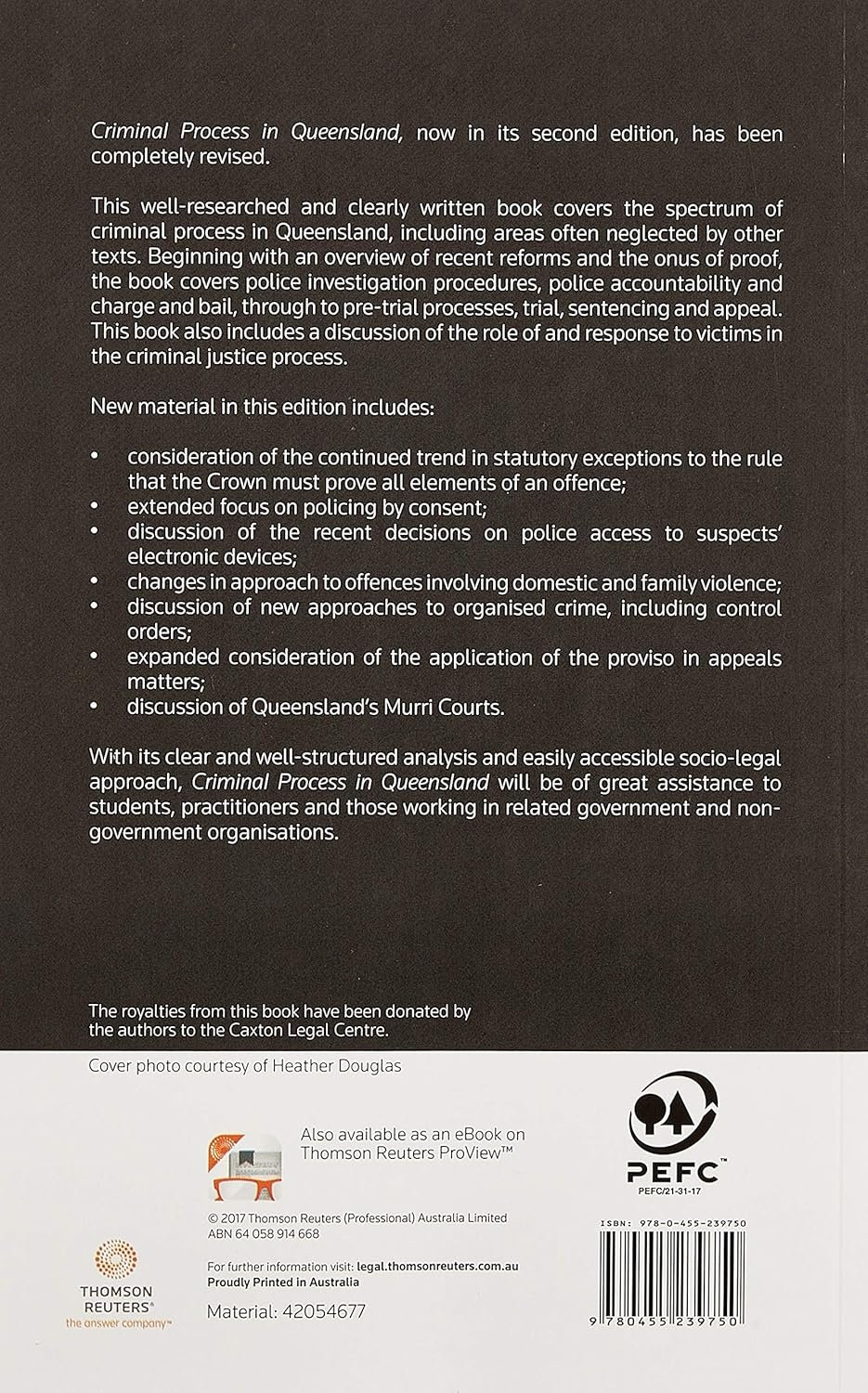 Criminal Process in Queensland has been completely revised. This well-researched and clearly written book covers the spectrum of criminal process in Queensland, including areas often neglected by other texts, beginning with an overview of recent reforms and the onus of proof the book covers police investigation procedures, police accountability and charge and bail, through to pre-trial processes, trial, sentencing and appeal.