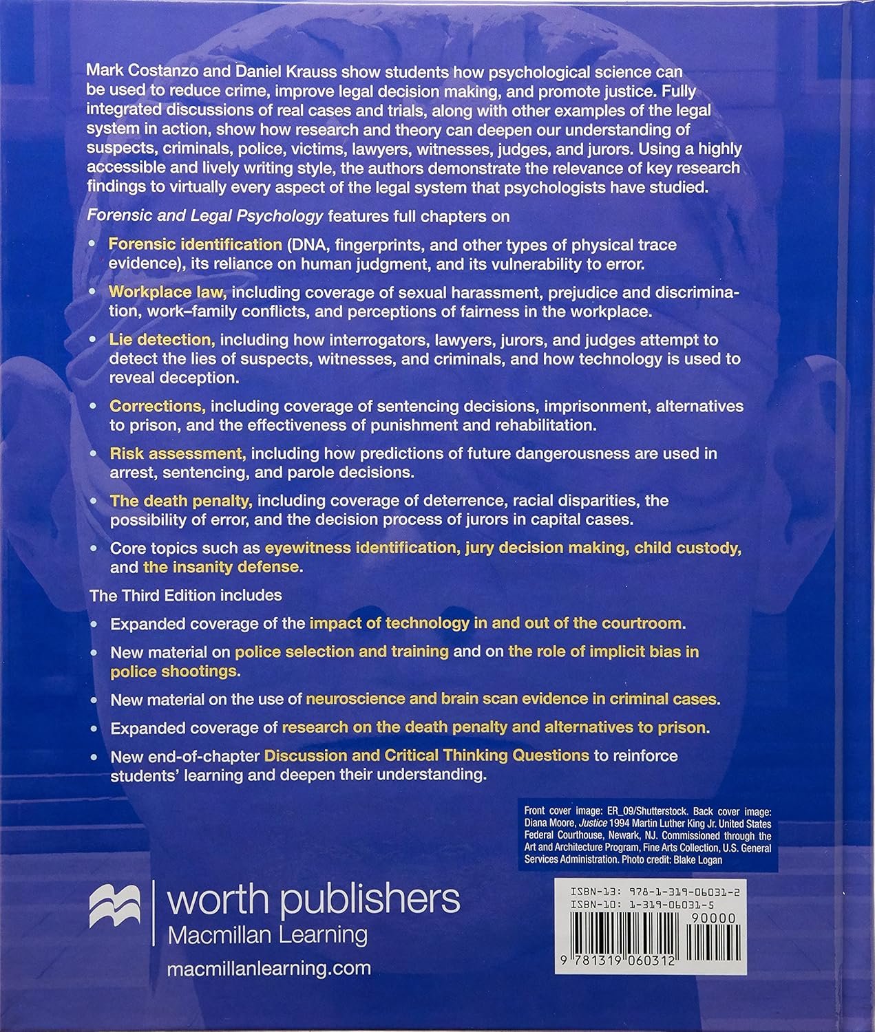 Costanzo and Krauss show students how psychological science can be used to enhance the gathering of evidence, improve legal decision making, reduce crime, and promote justice. With the integration of fascinating real trials, cases and other examples of the legal system in action, the authors illustrate how research and theory can deepen our understanding of suspects, criminals, police officers, victims, lawyers, witnesses, judges, and jurors.