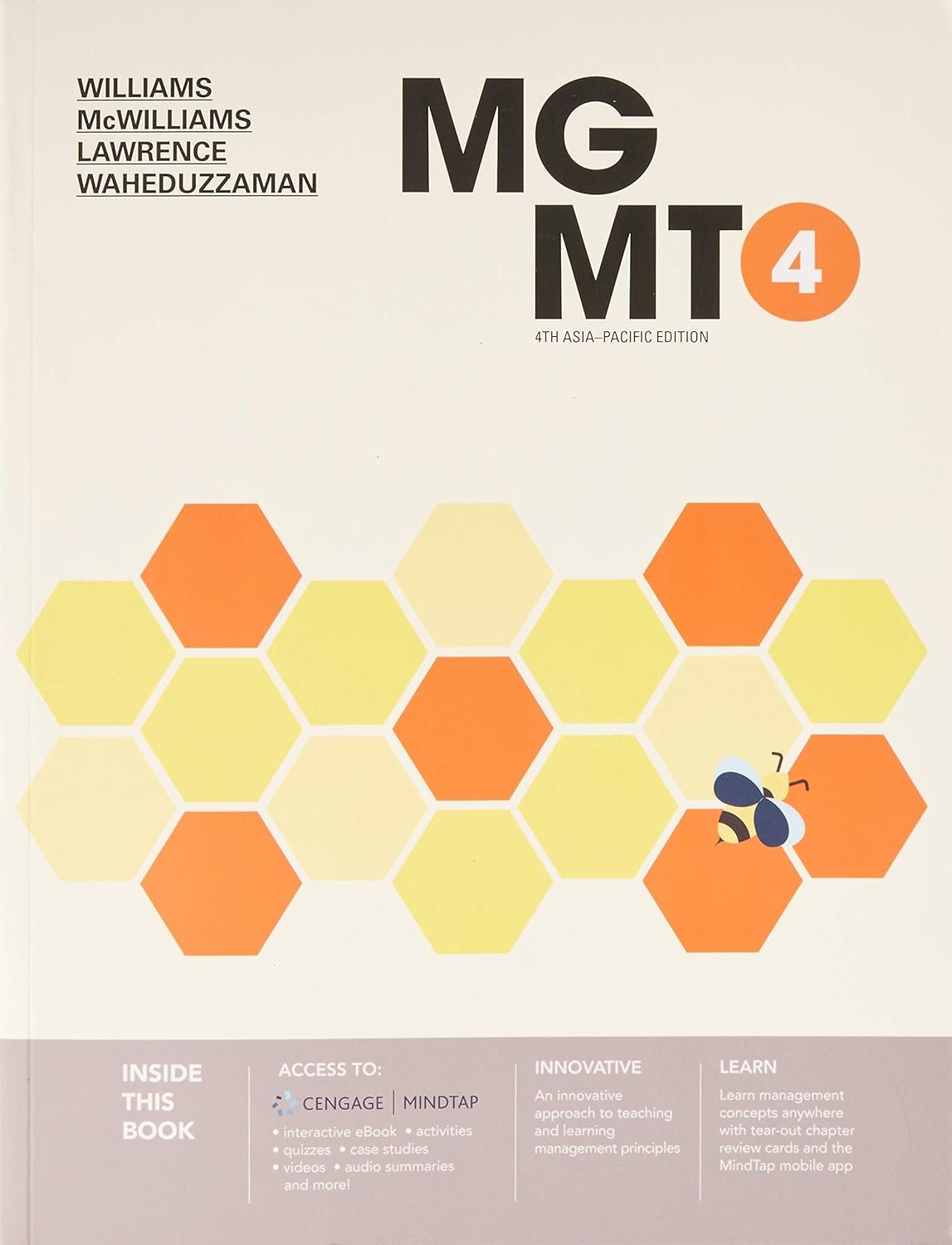 MGMT4 is a highly visual and engaging resource that takes an innovative approach to learning. It gives you concise, complete coverage of the subject and will help you learn the principles of management. MGMT4 is supported by online learning tools that provide you with the resources you need to succeed in your introductory management course. New, print versions of this book come with bonus online study tools on the MindTap platform. If you would prefer a digital-only option, purchase MindTap for MGMT4. When you purchase MindTap you receive all the online study tools along with the eBook version of your textbook. Plus, take course materials with you ‘ anytime, anywhere on the Cengage Mobile app! Your instructor will provide you with a course link to unlock MindTap.